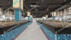 由于水產需要同時達到養殖兼展示的目的,一般采用下沉式或玻璃式柜臺。對于活海鮮,因其對貨柜空間、制冷設備、用電量等要求更高,我們建議放置在營業房內。