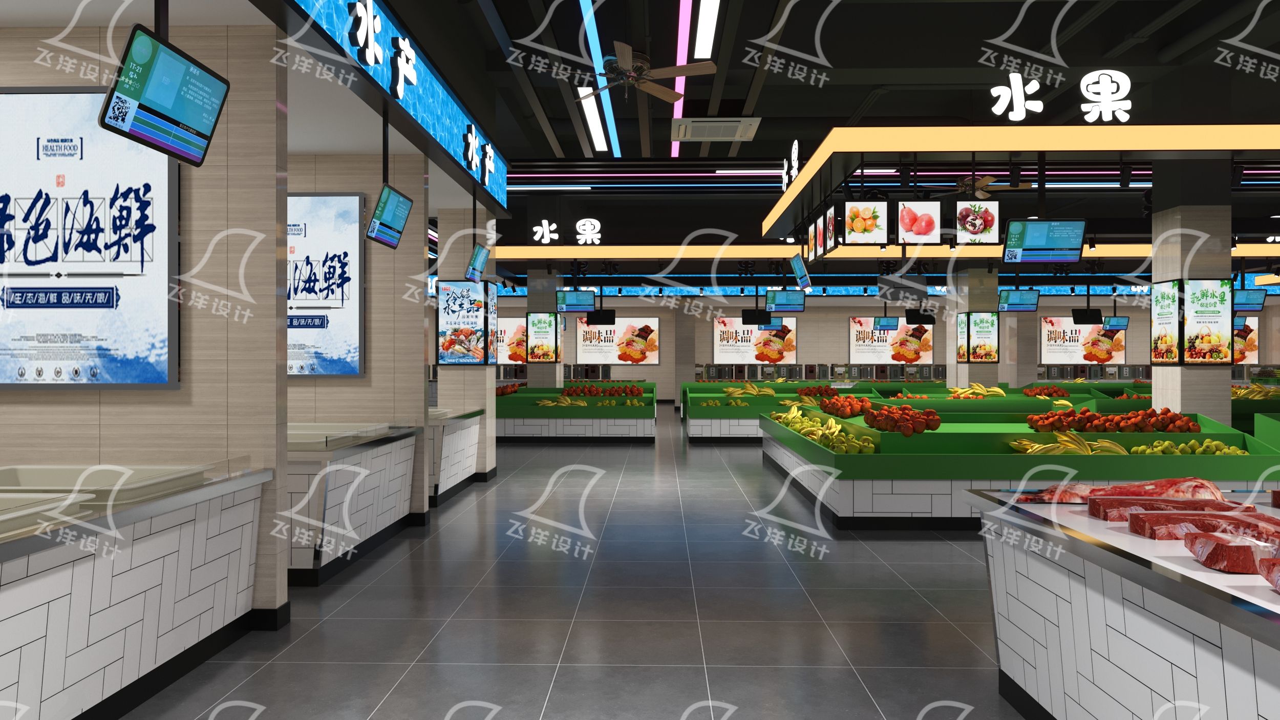 預算有限時,改造需“把錢花在刀刃上”。飛洋設計在【晴隆國際商貿城農貿市場】項目中,以電路和燈光設計為基礎,用統一攤位視覺和特色標識點睛,以最小成本實現環境與體驗的顯著升級。優先解決安全、衛生、照明等基礎問題,再逐步打造入口和示范攤位,分步推進避免資源浪費。