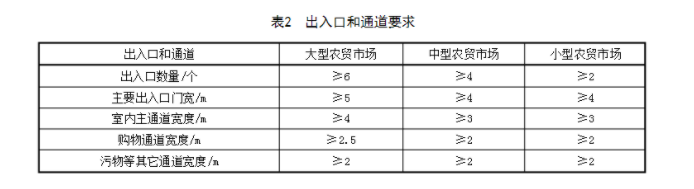 5.4.3、市場出入口數量和通道寬度應符合表2的規定。