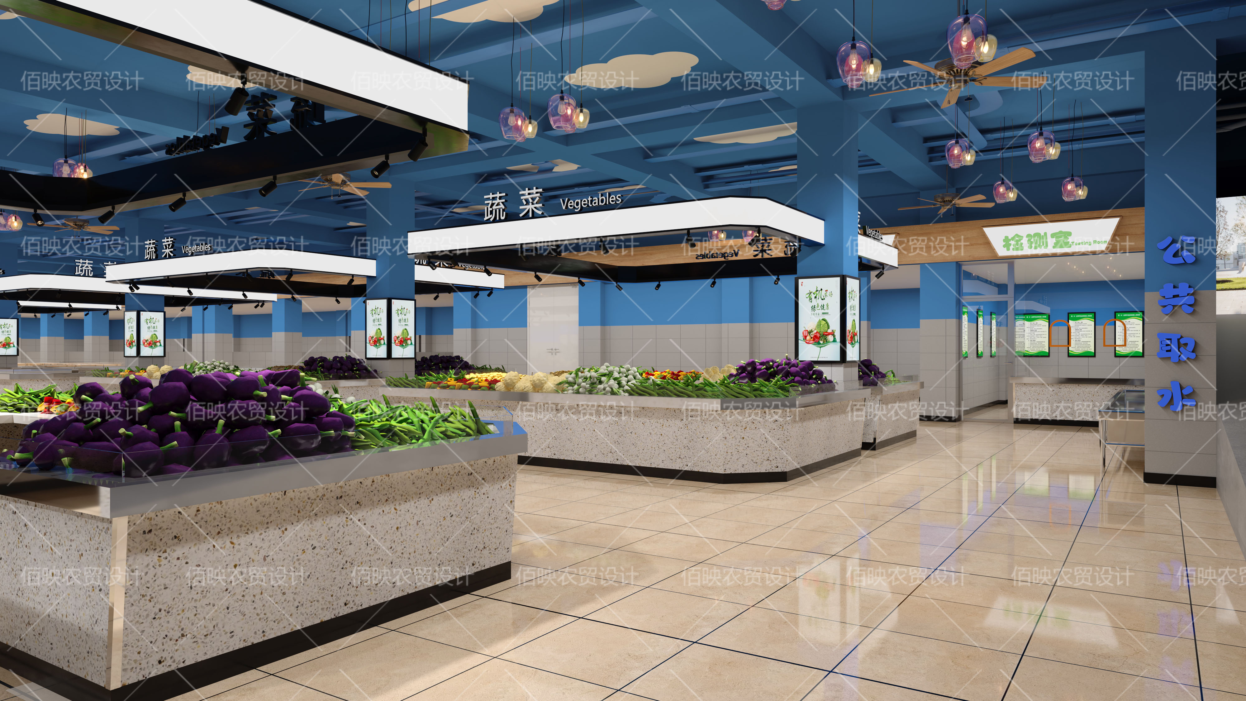 將原單層市場擴展為雙層,負一層與一層進行明確的功能分區,結合居民消費習慣,合理布局蔬菜、肉類、水產、自產自銷等不同業態,最大化利用擴容后的空間,滿足龐大客群的多樣化購物需求。