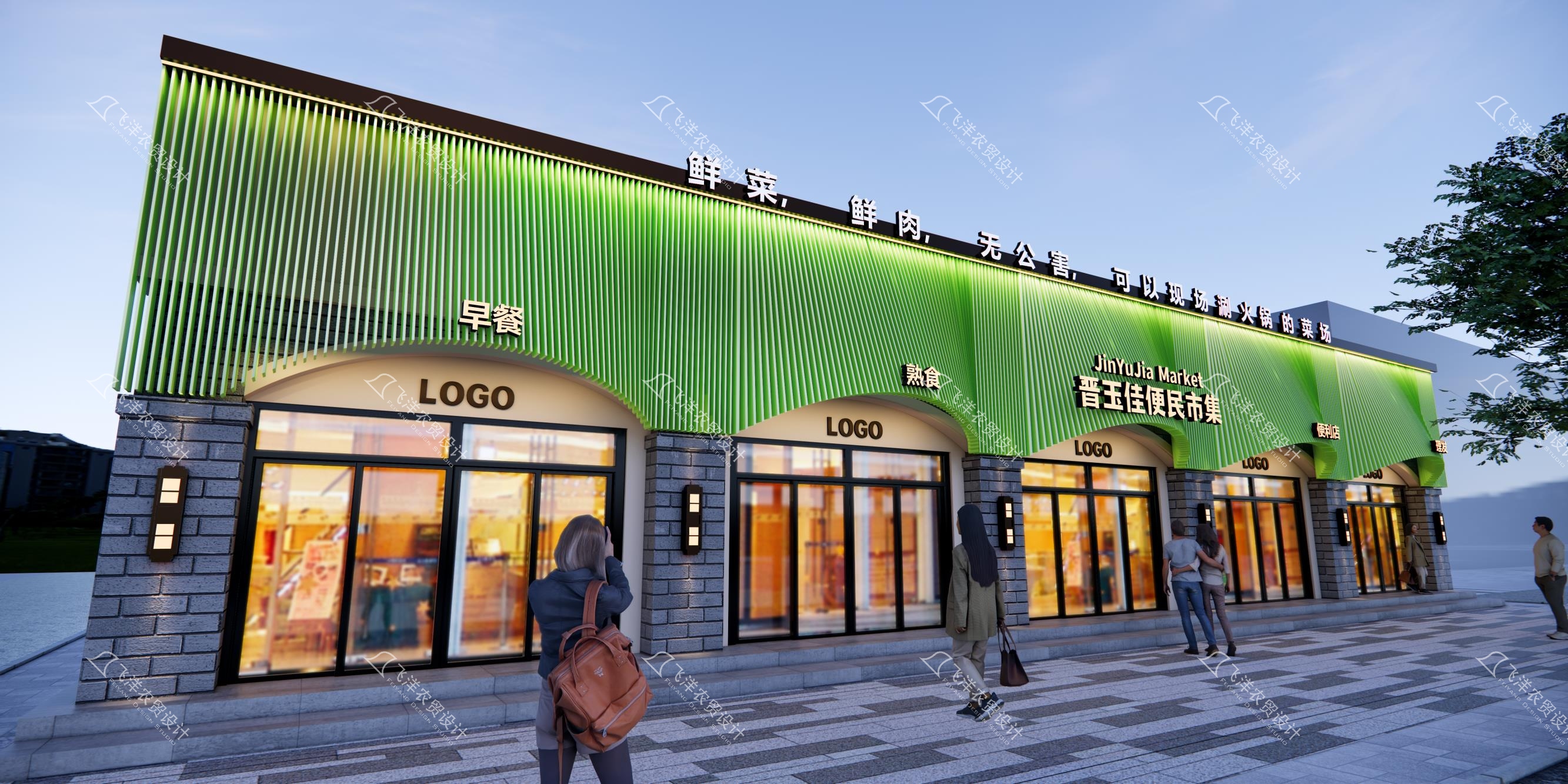 晉玉佳便民市集位于太原核心社區,項目面對原建筑外立面陳舊、內部規劃雜亂、品牌形象缺失的普遍困境。本次設計超越內部改造,進行從外到內的系統性價值重塑。我們以 “品牌化形象、自然化體驗、高效化運營” 三位一體為總綱,旨在將2000平方米的空間,從一個無序的買賣場所,升級為承載社區信任、滿足多元需求、具備持續活力的品質生活目的地。
