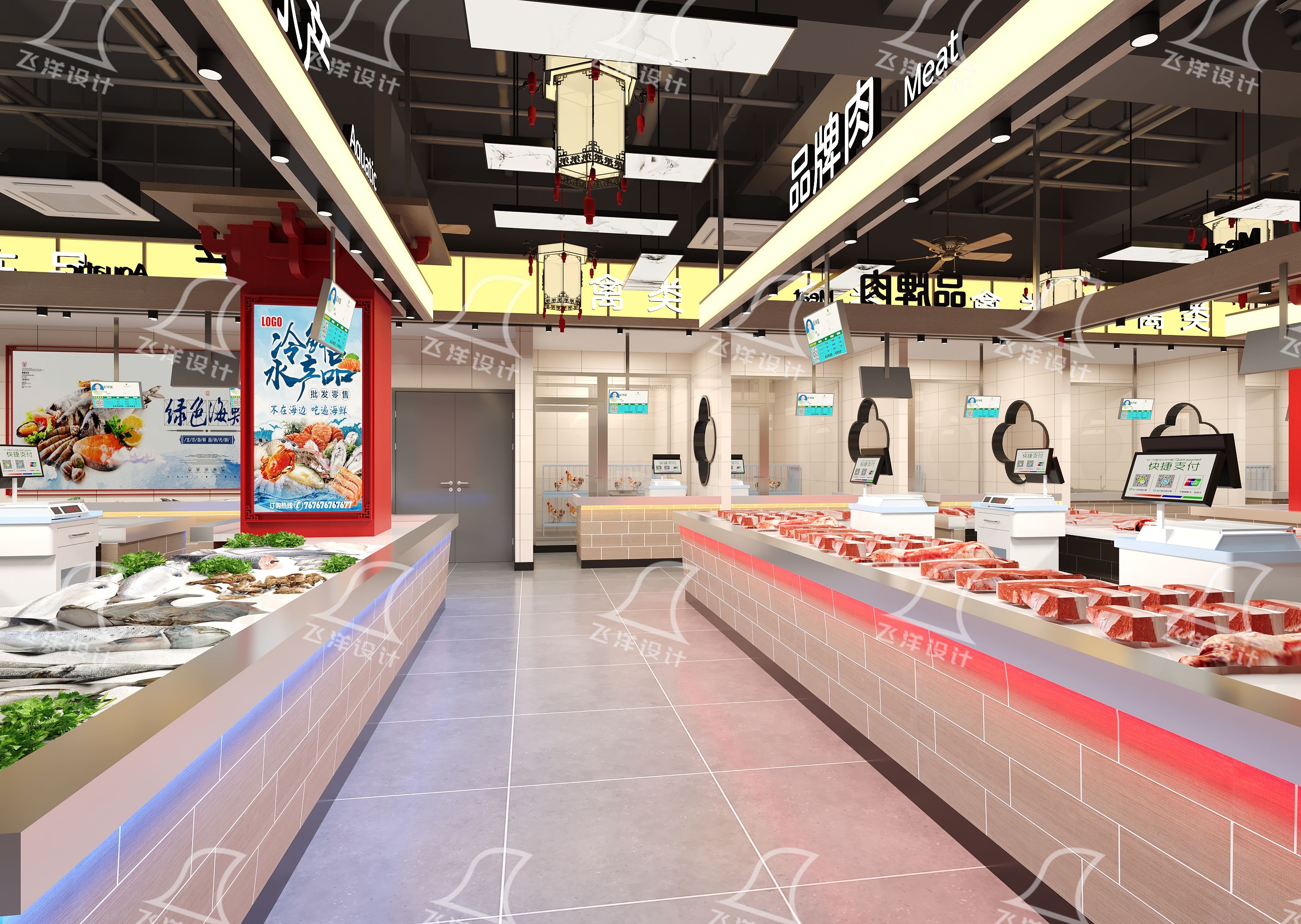 動線分級與業態耦合:采用 “主干道+組團式” 動線網絡。環形主干道流暢串聯各大功能區;各業態內部形成精細化組團(如蔬菜區、肉類集群、餐飲區),實現“逛”的舒暢與“購”的高效。嚴格實行生熟分離、干濕分區。