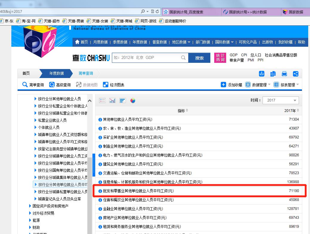 另外根據在中國統計局的資料中看到,批發和零售業的平均工資達71190元,除了所謂的IT人員和金融業從業人員,其平均工資是高于其他各行業的。另外筆者在一個三線城市的銀行理財人員口中得知,真別小看農貿市場的一些坐商,那些從事干貨生意的坐商,幾千萬現金在手上是常態。其他的坐商,幾年下來賺幾百萬也并非什么難事,現在銀行的各大支點都將客戶瞄準了農貿市場上的農貿人,確實有錢。