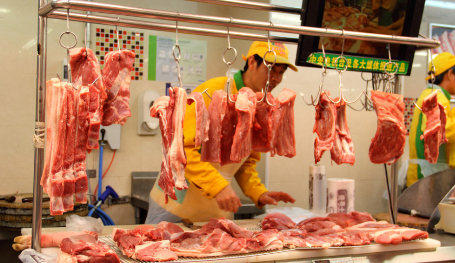 對于不同肉類來說,農貿市場攤位效果設計也略有不同,其差異主要在于鮮肉與品牌肉。品牌肉需要設計冷藏柜臺,而鮮肉現切現買,其臺面通常采用白色聚乙烯材質,且在設計中還需要設置砧板。為了讓肉質在陳列上更顯新鮮,在照明上通常采用紅色LED生鮮燈。肉類的陳列形式較為簡單,保鮮是第一位的。