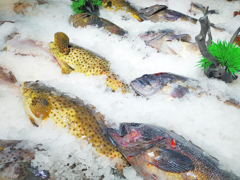 水產攤位下水不暢常常會造成市場部分區域地面異常濕滑,這嚴重影響了市場形象。對于水產區來說,農貿市場攤位效果設計首先要解決的便是下水問題。在設計中,于攤位內部增加下水明溝,同時設置下水地漏。由于水產攤位需要同時達到養殖兼展示的目的,一般采用下沉式或玻璃式柜臺。在照明上,采用藍色LED燈來營造海洋風格。
