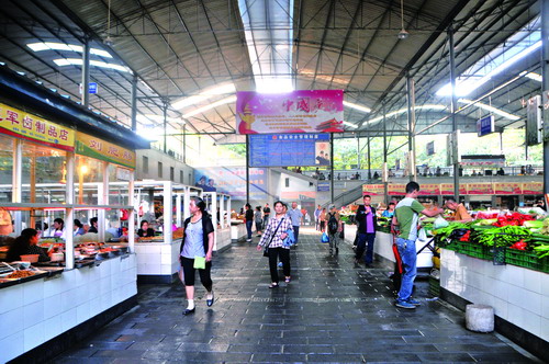 3、商品分區(qū)按蔬菜、肉類、豆制品、熟食、水產(chǎn)、活禽等商品分類進(jìn)行劃行歸市,布局合理,區(qū)域標(biāo)志明顯;