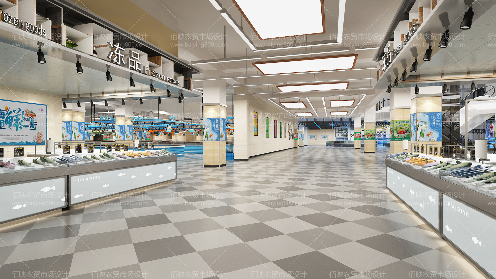 場內大類商品布局應合理,并嚴格按商品種類劃分區域,鮮、活、生、熟、干、濕商品供應區應相對集中,分區銷售。